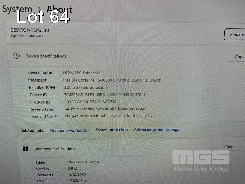 ALL-IN-ONE PC, DELL OPTIPLEX 7480, CORE i5 10500 (10TH GEN) @ 3.1GHz, 8GB DDR4 RAM, 512GB NVMe M.2 SSD, INBUILT 23.8" FHD WIDESCREEN (1920x1080), INTEL HD VIDEO, WEBCAM, 5 x USB, 1 x USB-C, Wi-Fi, BLUETOOTH, WINDOWS 11 HOME INSTALLED, KEYBOARD & MOUSE