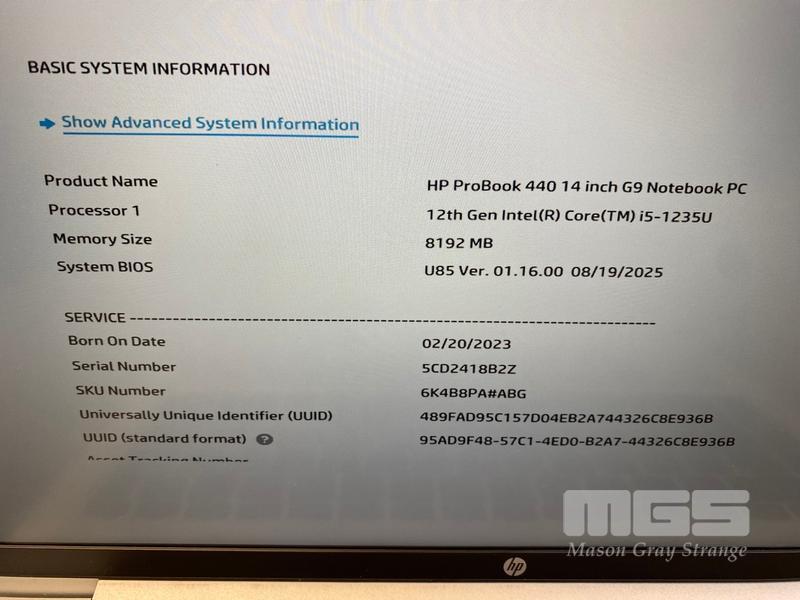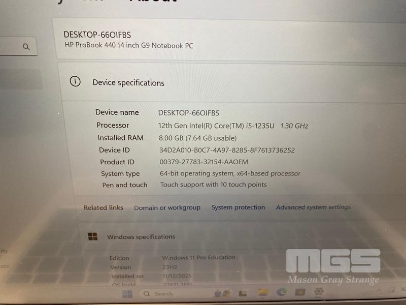 LAPTOP, HP PROBOOK 440 G9, CORE i5 1235U (12TH GEN) @ 1.3GHz, 8GB DDR4 RAM, 256GB NVMe M.2 SSD, 14" TOUCHSCREEN (1920x1080), INTEL UHD GRAPHICS, Wi-Fi, BLUETOOTH, WINDOWS 11 PRO EDUCATION INSTALLED & POWER SUPPLY (NOTE: SPOTS ON SCREEN, MINOR DAMAGE TO CASING)