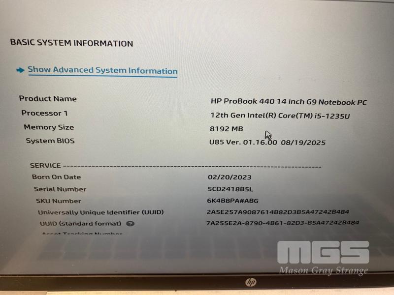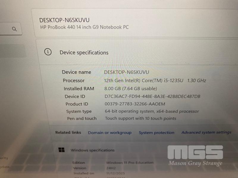 LAPTOP, HP PROBOOK 440 G9, CORE i5 1235U (12TH GEN) @ 1.3GHz, 8GB DDR4 RAM, 256GB NVMe M.2 SSD, 14" TOUCHSCREEN (1920x1080), INTEL UHD GRAPHICS, Wi-Fi, BLUETOOTH, WINDOWS 11 PRO EDUCATION INSTALLED & POWER SUPPLY (NOTE: SPOTS ON SCREEN, MINOR DAMAGE TO CASING, MARKS ON SCREEN)