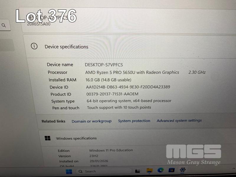 LAPTOP, LENOVO THINKPAD L14 Gen2, TYPE 20X6, AMD RYZEN 5 PRO 5650U @ 2.3GHz, 16GB DDR4 RAM, 256GB NVMe M.2 SSD, 14" TOUCHSCREEN (1920x1080), Wi-Fi, BLUETOOTH, WINDOWS 11 PRO EDUCATION INSTALLED (NO USB-C POWER SUPPLY) (NOTE: MINOR DAMAGE TO CASING, CASING MISSING "THINKPAD" LOGO, MARKS ON SCREEN)