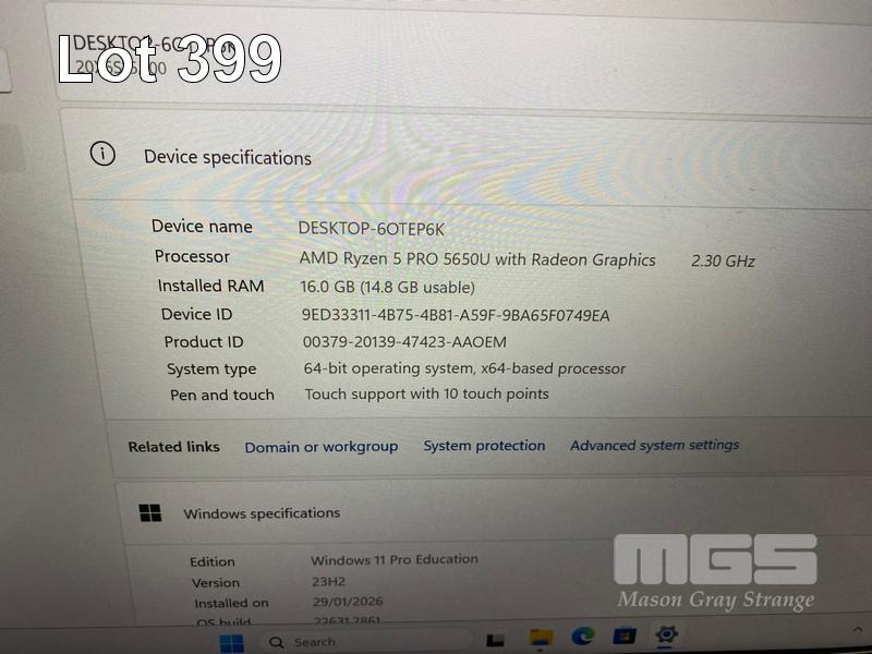 LAPTOP, LENOVO THINKPAD L14 Gen2, TYPE 20X6, AMD RYZEN 5 PRO 5650U @ 2.3GHz, 16GB DDR4 RAM, 256GB NVMe M.2 SSD, 14" TOUCHSCREEN (1920x1080), Wi-Fi, BLUETOOTH, WINDOWS 11 PRO EDUCATION INSTALLED (NO USB-C POWER SUPPLY) (NOTE: DAMAGE TO CASING, MARKS ON SCREEN)