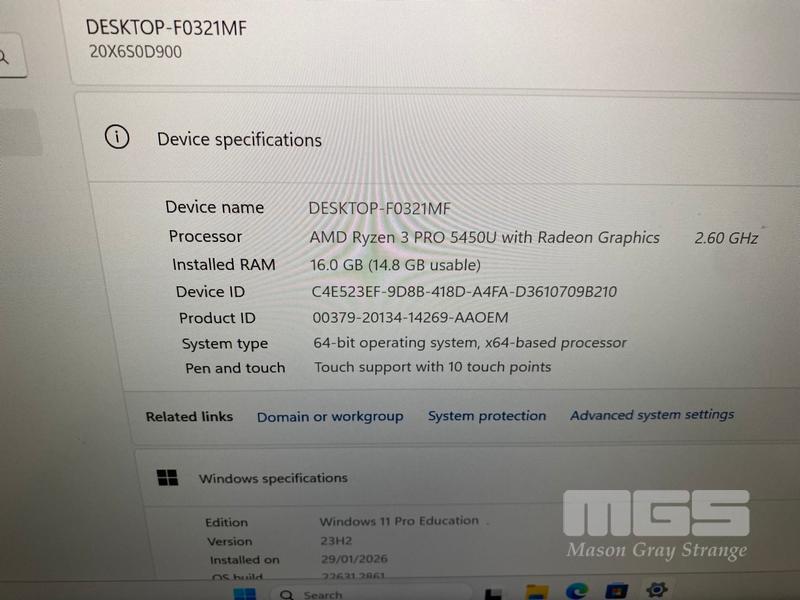 LAPTOP, LENOVO THINKPAD L14 Gen2, TYPE 20X6, AMD RYZEN 3 PRO 5450U @ 2.6GHz, 16GB DDR4 RAM, 256GB NVMe M.2 SSD, 14" TOUCHSCREEN (1920x1080), Wi-Fi, BLUETOOTH, WINDOWS 11 PRO EDUCATION INSTALLED (NO USB-C POWER SUPPLY)