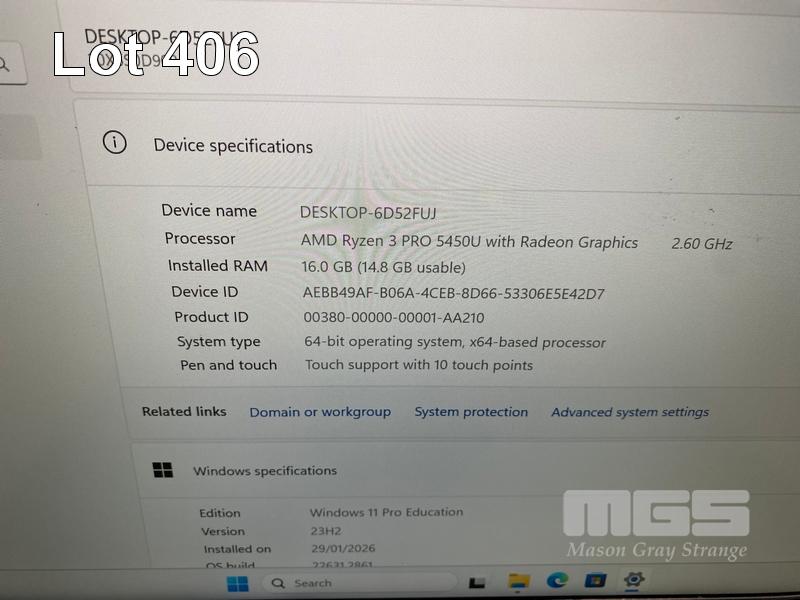 LAPTOP, LENOVO THINKPAD L14 Gen2, TYPE 20X6, AMD RYZEN 3 PRO 5450U @ 2.6GHz, 16GB DDR4 RAM, 256GB NVMe M.2 SSD, 14" TOUCHSCREEN (1920x1080), Wi-Fi, BLUETOOTH, WINDOWS 11 PRO EDUCATION INSTALLED (NO USB-C POWER SUPPLY) (NOTE: MARKS ON SCREEN)