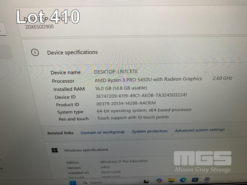 LAPTOP, LENOVO THINKPAD L14 Gen2, TYPE 20X6, AMD RYZEN 3 PRO 5450U @ 2.6GHz, 16GB DDR4 RAM, 256GB NVMe M.2 SSD, 14" TOUCHSCREEN (1920x1080), Wi-Fi, BLUETOOTH, WINDOWS 11 PRO EDUCATION INSTALLED (NO USB-C POWER SUPPLY) (NOTE: MARKS & SPOT ON SCREEN)