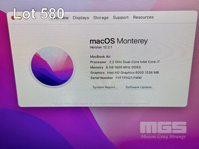 LAPTOP, APPLE MACBOOK AIR (A1466), CORE i7 5650U (5TH GEN) @ 2.2GHz, 8GB DDR3 RAM, 512GB SSD, 13.3" DISPLAY (1440x900), INTEL HD GRAPHICS 6000, Wi-Fi, BLUETOOTH, MAC OS 12 INSTALLED & POWER SUPPLY