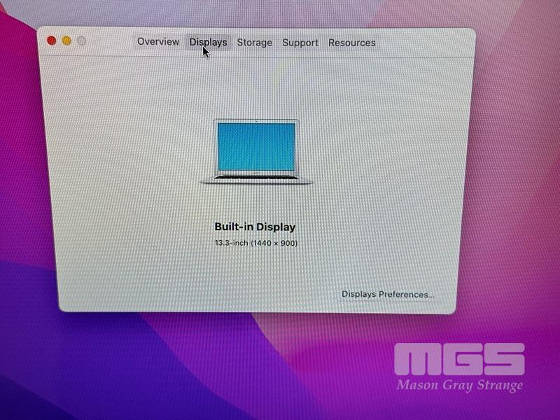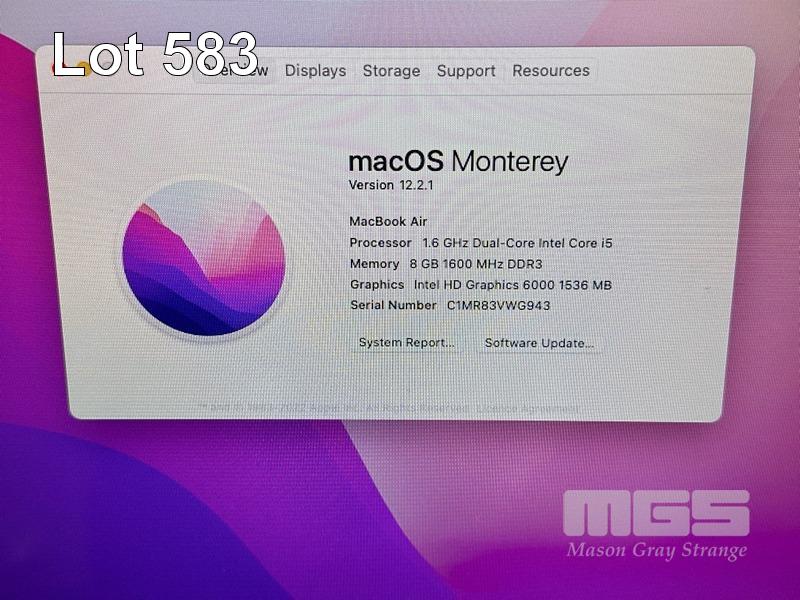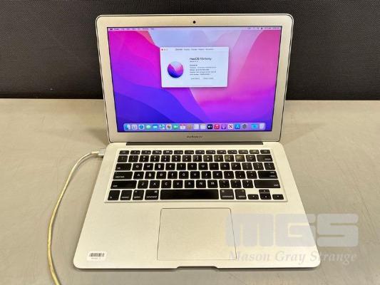 LAPTOP, APPLE MACBOOK AIR (A1466), CORE i5 5250U (5TH GEN) @ 1.6GHz, 8GB DDR3 RAM, 128GB SSD, 13.3" DISPLAY (1440x900), INTEL HD GRAPHICS 6000, Wi-Fi, BLUETOOTH, MAC OS 12 INSTALLED (NO POWER SUPPLY) (NOTE: BATTERY NOT CHARGING)