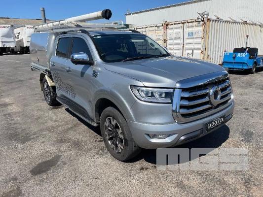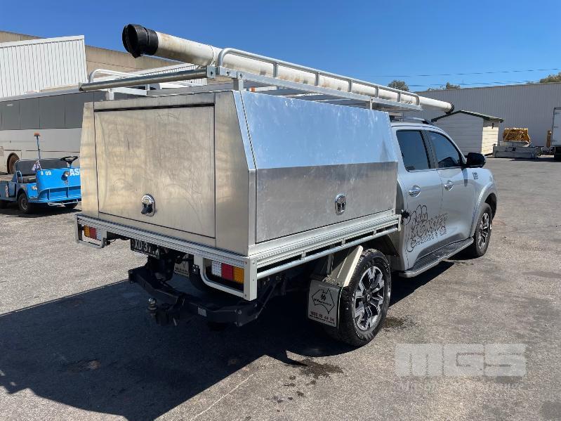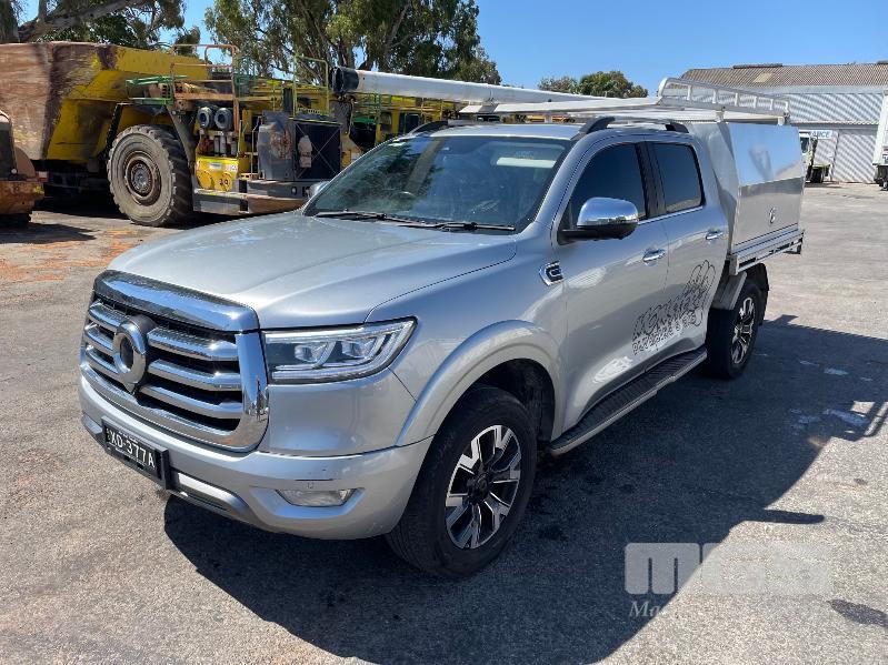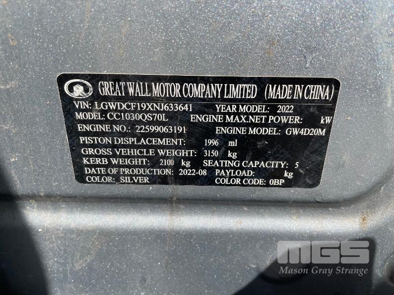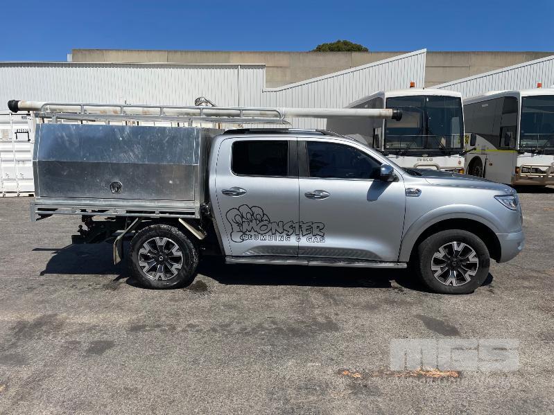 2022 GWM CANNON-L DUAL CAB UTILITY 4X4 REG: XD377A VIN: LGWDCF19XNJ633641 ODO: 56,382kms SHOWING 2.0L DTFI DT4, 8 SPEED AUTOMATIC TRANSMISSION, DIESEL, SILVER DUCO, 4 DOORS, 5 SEAT, 4X4 ABS, AIR BAG, AIR CON, ALLOY TRAY, ALLOY WHEELS, BLUETOOTH, CANOPY, CENTRAL LOCKING, CRUISE CONTROL, IMMOBILISER, LADDER RACK, LEATHER TRIM, POWER STEERING, POWER WINDOWS, ROOF RACKS, SAT NAV, SIDE STEP, SPARE WHEEL, TOOL BOX, TOW BAR, TRACTION CONTROL, KEY# 46 (WITH 1 KEY/S)