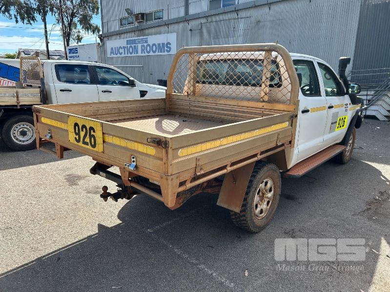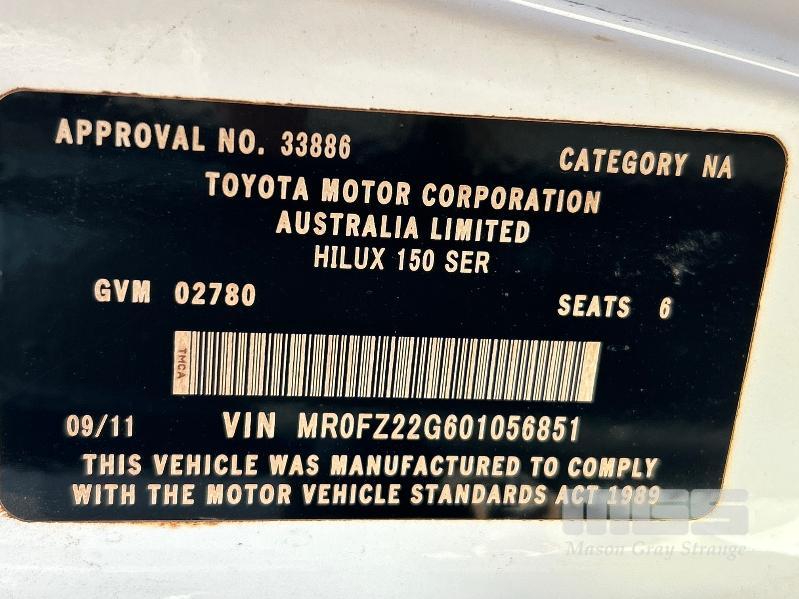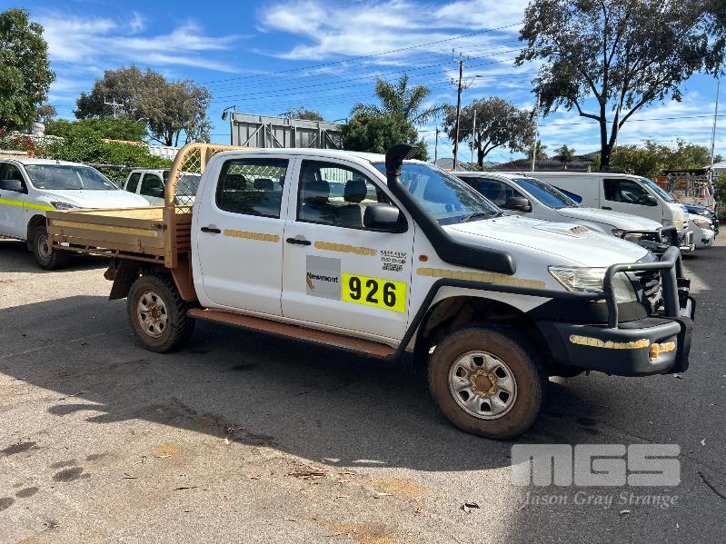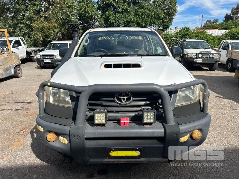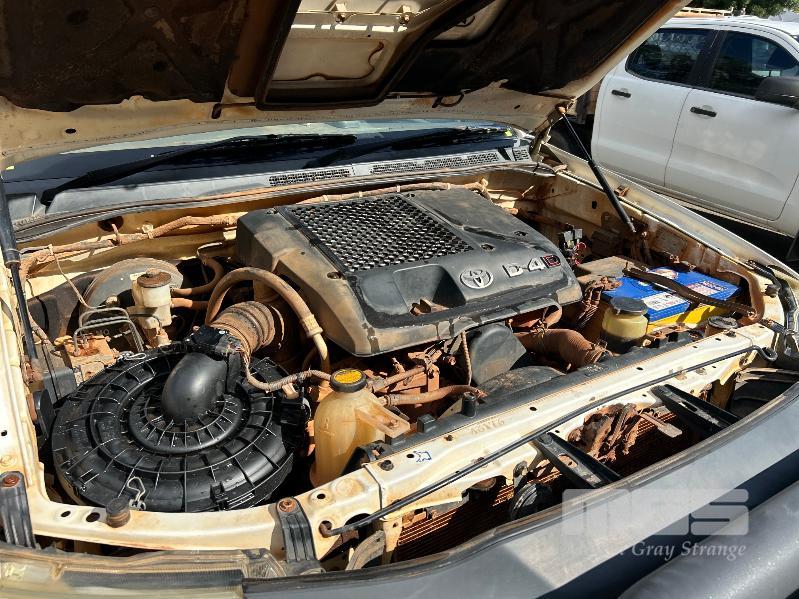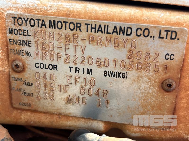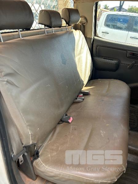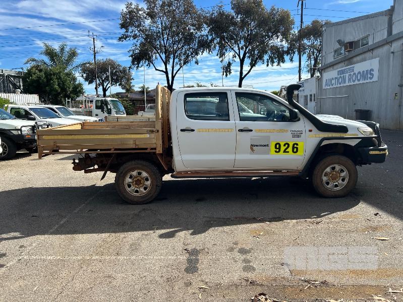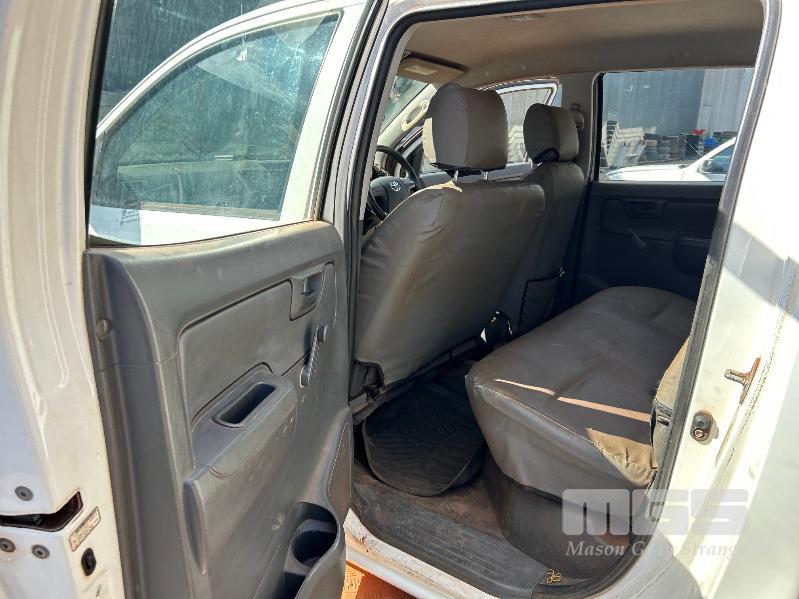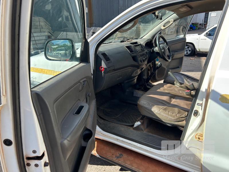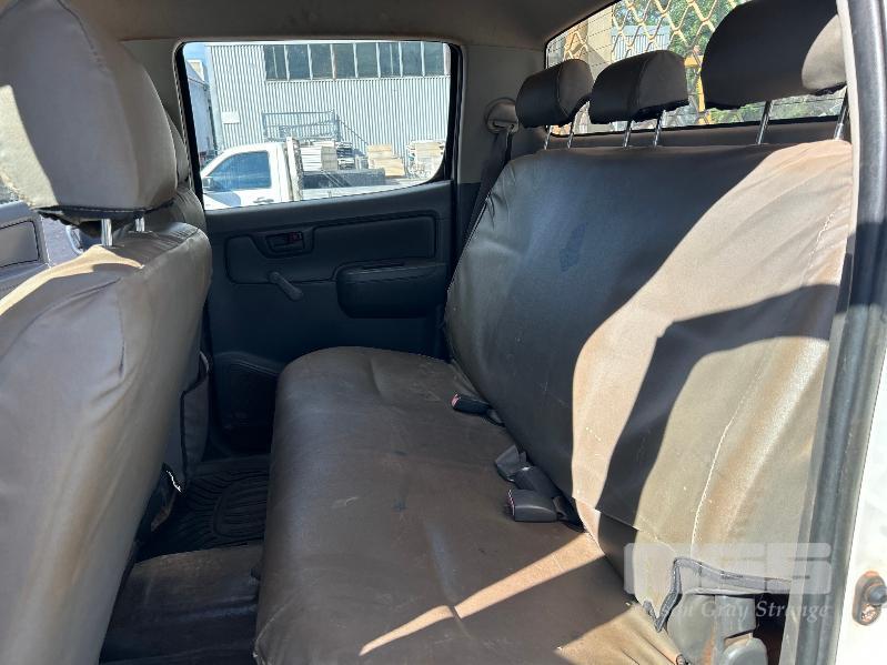 2011 TOYOTA HILUX KUN26R 150 SERIES DUAL CAB TRAY TOP 4x4 REG: NO PLATES VIN: MR0FZ22G601056851 ODO: 157,988kms SHOWING 3.0LITRE TURBO DIESEL, MANUAL TRANSMISSION, WHITE DUCO, 4 DOORS, 6 SEAT, 4x4 ABS, AIR BAG, AIR CON, ALLOY TRAY, BULL BAR, CARGO BARRIER, DECALS, POWER STEERING, SIDE STEP, SPARE WHEEL, SPOT LIGHTS, TOW BAR, SNORKEL AIR INTAKE BATTERY ISOLATION SWITCH KEY #45 (WITH 1 KEY/S)