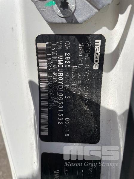 2016 MAZDA BT-50 SINGLE CAB REG: S 387 CJF (SA) VIN: MM0UR0YD100531592 ODO: 144,788 2.2L, 6 SPEED MANUAL, DIESEL, WHITE, 2 DOORS, 3 SEAT, ABS, AIR BAG, AIR CON, ALLOY TRAY, CENTRAL LOCKING, POWER STEERING, SPARE WHEEL, WARNING LIGHTS, TRAFFIC ARROW KEY #10 (NO PAPERS, WITH 1 KEY/S)