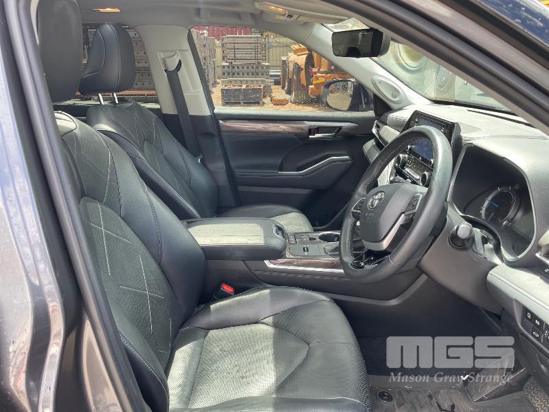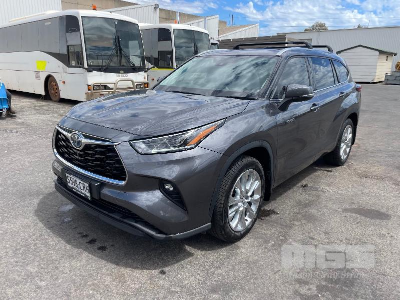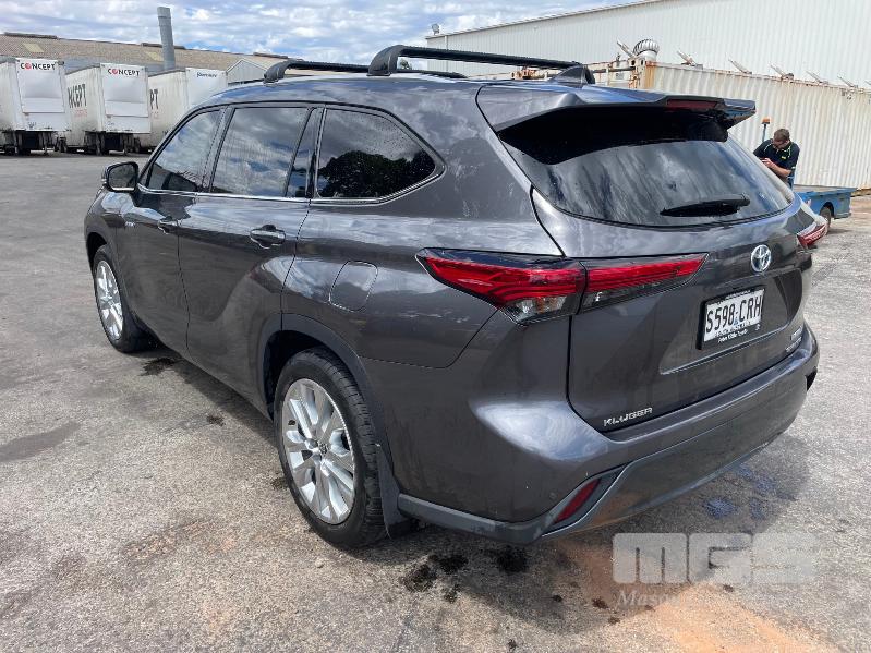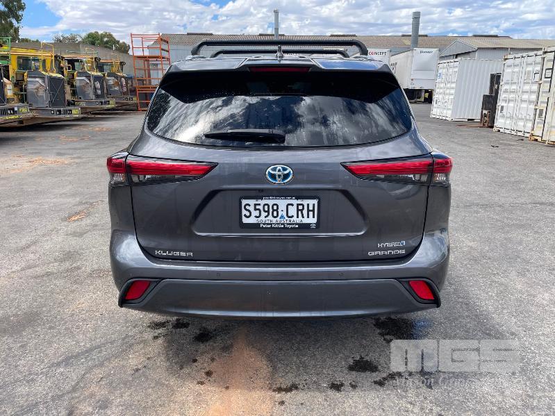 2022 TOYOTA KLUGER GRANDE HYBRID AXUH78R WAGON AWD REG: S598 CRH (SA) VIN: 5TDLB3CH40S092091 ODO: 32,322kms SHOWING CTV, GUN METAL GREY, 5 DOORS, AWD ABS, AIR BAG, AIR CON, ALLOY WHEELS, BLUETOOTH, CD PLAYER, CENTRAL LOCKING, CRUISE CONTROL, IMMOBILISER, LEATHER TRIM, POWER WINDOWS, ROOF RACKS, SAT NAV, SPARE WHEEL, SUNROOF, TRACTION CONTROL, *** COLLECTED 2/02/2026 BY SLATTERY AUCTIONS SA FOR FINANCE ONE *** HEATED & AC SEATS, AUTOMATIC BOOT, PARK ASSIST, LANE ASSIST, TOYOTA GENUINE ROOF RACKS, EV MODE KEY #3 (WITH PAPERS, WITH 2 KEY/S, WITH OWNER'S MANUAL, WITH SERVICE BOOKS)
