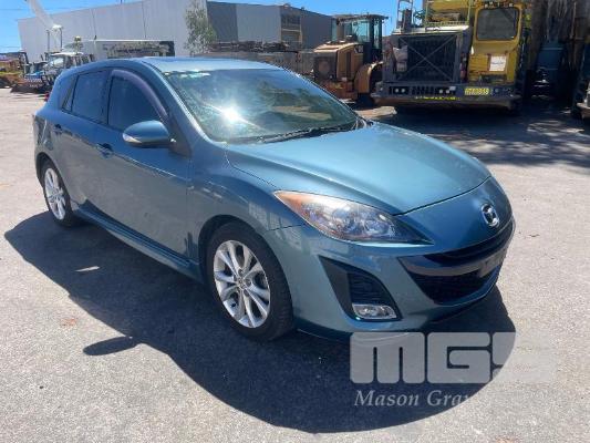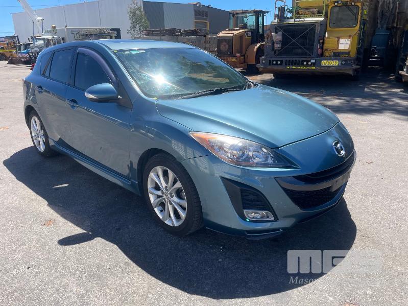 2009 MAZDA 3 SP25 HATCHBACK REG: NO PLATES VIN: JLM0BL10L100122280 ENG: L510306112 ODO: 215,013kms SHOWING 4 CYLINDER EFI PETROL, AUTOMATIC TRANSMISSION, BLUE DUCO, 4 DOORS, 5 SEAT, ABS, AIR BAG, AIR CON, ALLOY WHEELS, BLUETOOTH, CD PLAYER, CENTRAL LOCKING, CRUISE CONTROL, IMMOBILISER, POWER STEERING, POWER WINDOWS, SPARE WHEEL, SUNROOF, HAS COMPLETE SERVICE HISTORY RECEIPTS KEY #43 (WITH PAPERS, WITH 2 KEY/S)