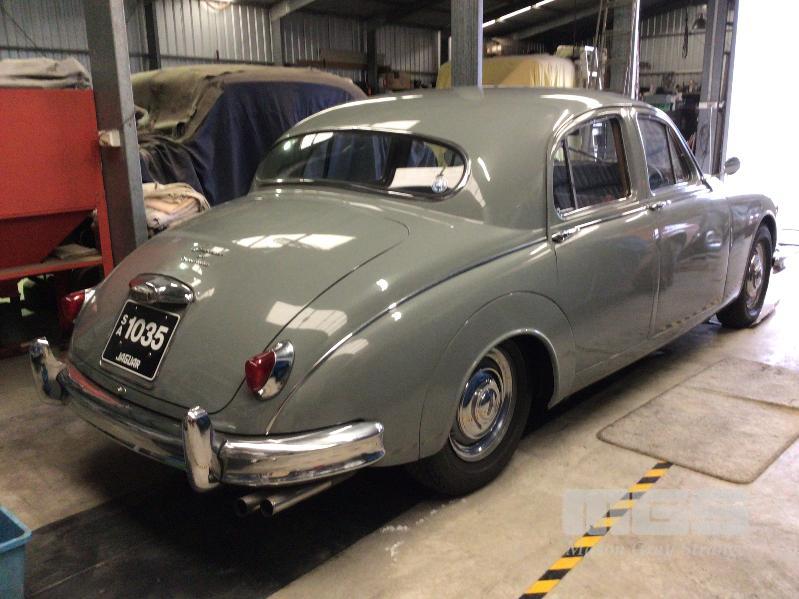 1958 JAGUAR MK1, 3.4L 6 CYLINDER, AUTO, GREY DUCO, RED VINYL & CARPET, RUNS & DRIVES WITH PAPERS & KEY (NOTE PLATES NOT INCLUDED)