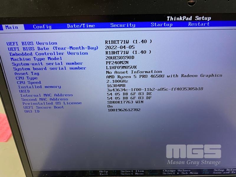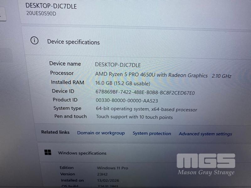 LAPTOP, LENOVO THINKPAD T14 Gen1, TYPE 20UE, AMD RYZEN 5 PRO 4650U @ 2.1GHz, 16GB DDR4 RAM, 256GB NVMe M.2 SSD, 14" TOUCHSCREEN (1920x1080), Wi-Fi, BLUETOOTH, WINDOWS 11 PRO INSTALLED (NO USB-C POWER SUPPLY) (NOTE: MARKS ON SCREEN)