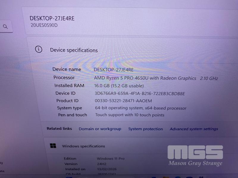 LAPTOP, LENOVO THINKPAD T14 Gen1, TYPE 20UE, AMD RYZEN 5 PRO 4650U @ 2.1GHz, 16GB DDR4 RAM, 512GB NVMe M.2 SSD, 14" TOUCHSCREEN (1920x1080), Wi-Fi, BLUETOOTH, WINDOWS 11 PRO INSTALLED (NO USB-C POWER SUPPLY)