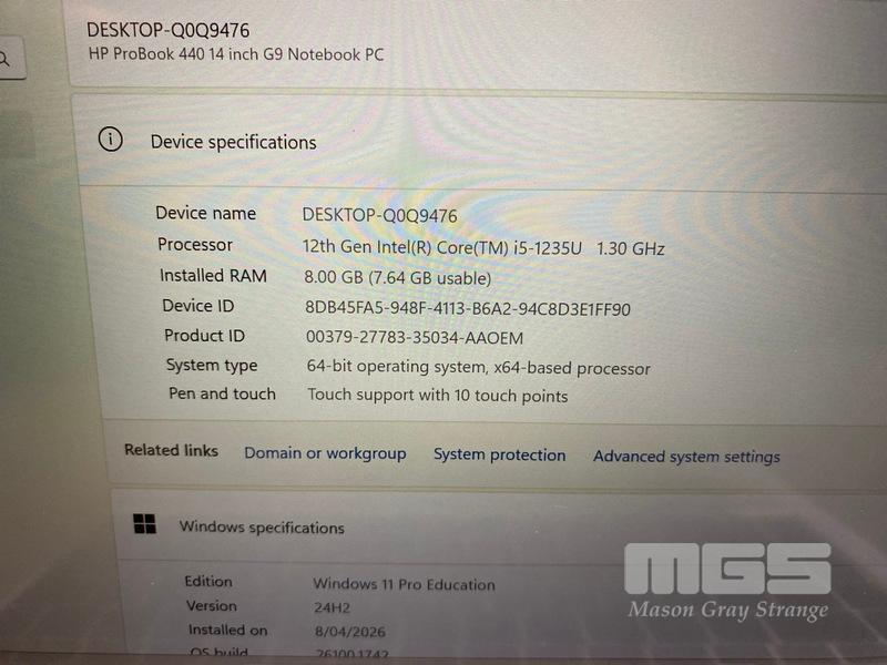LAPTOP, HP PROBOOK 440 G9, CORE i5 1235U (12TH GEN) @ 1.3GHz, 8GB DDR4 RAM, 256GB NVMe M.2 SSD, 14" TOUCHSCREEN (1920x1080), INTEL UHD GRAPHICS, Wi-Fi, BLUETOOTH, WINDOWS 11 PRO EDUCATION INSTALLED & POWER SUPPLY