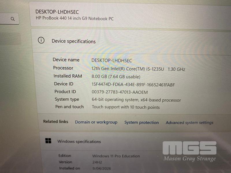 LAPTOP, HP PROBOOK 440 G9, CORE i5 1235U (12TH GEN) @ 1.3GHz, 8GB DDR4 RAM, 256GB NVMe M.2 SSD, 14" TOUCHSCREEN (1920x1080), INTEL UHD GRAPHICS, Wi-Fi, BLUETOOTH, WINDOWS 11 PRO EDUCATION INSTALLED & POWER SUPPLY (NOTE: MINOR DAMAGE TO CASING)