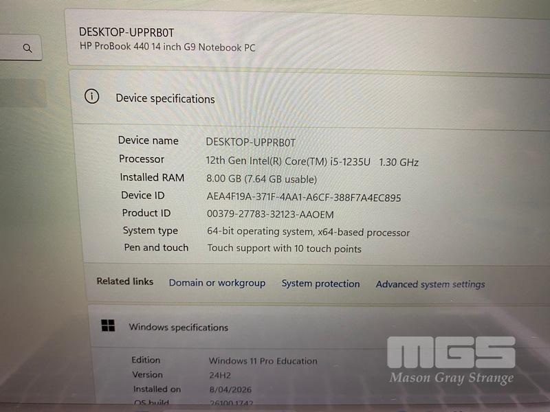 LAPTOP, HP PROBOOK 440 G9, CORE i5 1235U (12TH GEN) @ 1.3GHz, 8GB DDR4 RAM, 256GB NVMe M.2 SSD, 14" TOUCHSCREEN (1920x1080), INTEL UHD GRAPHICS, Wi-Fi, BLUETOOTH, WINDOWS 11 PRO EDUCATION INSTALLED & POWER SUPPLY