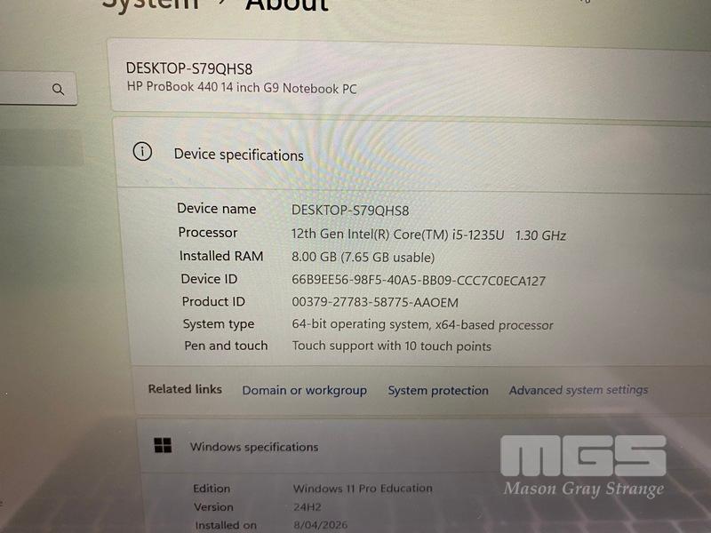 LAPTOP, HP PROBOOK 440 G9, CORE i5 1235U (12TH GEN) @ 1.3GHz, 8GB DDR4 RAM, 256GB NVMe M.2 SSD, 14" TOUCHSCREEN (1920x1080), INTEL UHD GRAPHICS, Wi-Fi, BLUETOOTH, WINDOWS 11 PRO EDUCATION INSTALLED & POWER SUPPLY