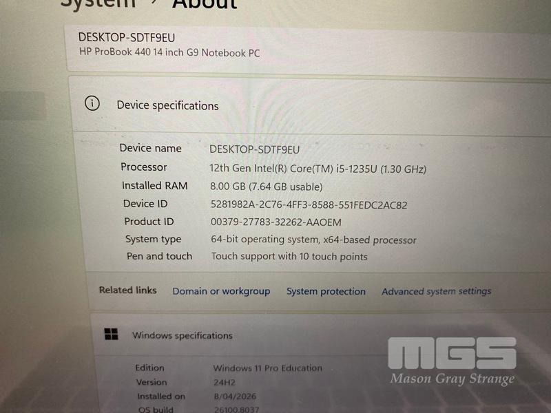 LAPTOP, HP PROBOOK 440 G9, CORE i5 1235U (12TH GEN) @ 1.3GHz, 8GB DDR4 RAM, 256GB NVMe M.2 SSD, 14" TOUCHSCREEN (1920x1080), INTEL UHD GRAPHICS, Wi-Fi, BLUETOOTH, WINDOWS 11 PRO EDUCATION INSTALLED & POWER SUPPLY