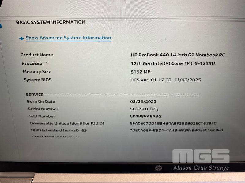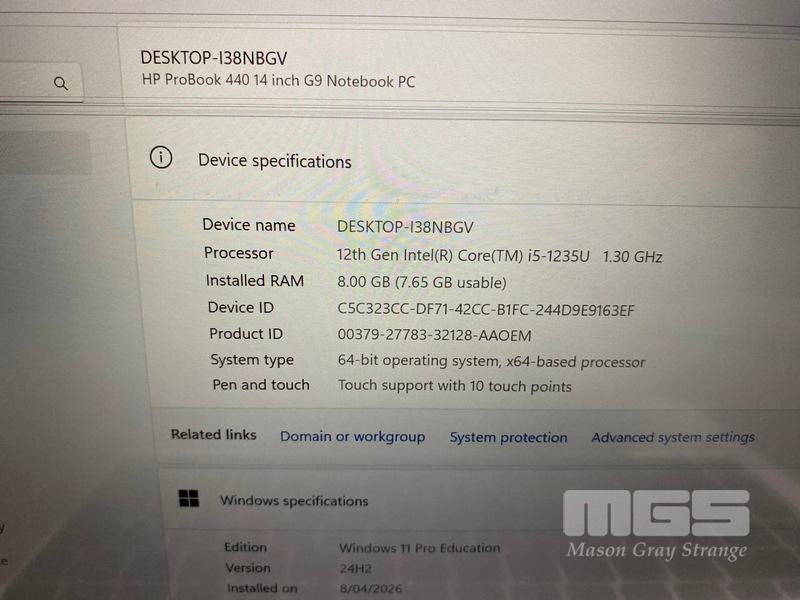 LAPTOP, HP PROBOOK 440 G9, CORE i5 1235U (12TH GEN) @ 1.3GHz, 8GB DDR4 RAM, 256GB NVMe M.2 SSD, 14" TOUCHSCREEN (1920x1080), INTEL UHD GRAPHICS, Wi-Fi, BLUETOOTH, WINDOWS 11 PRO EDUCATION INSTALLED & POWER SUPPLY (NOTE: DAMAGE TO SCREEN & CASING, MARKS ON SCREEN)