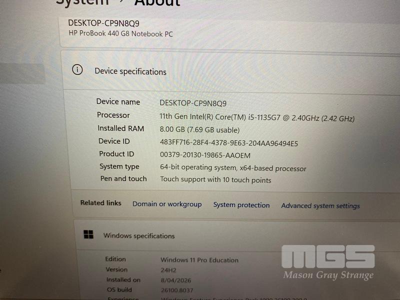 LAPTOP, HP PROBOOK 440 G8, CORE i5 1135G7 (11TH GEN) @ 2.4GHz, 8GB DDR4 RAM, 256GB NVMe M.2 SSD, 14" TOUCHSCREEN (1920x1080), INTEL UHD GRAPHICS, Wi-Fi, BLUETOOTH, WINDOWS 11 PRO EDUCATION INSTALLED & POWER SUPPLY (NOTE: MINOR DENTS ON CASING, MINOR MARKS ON SCREEN)