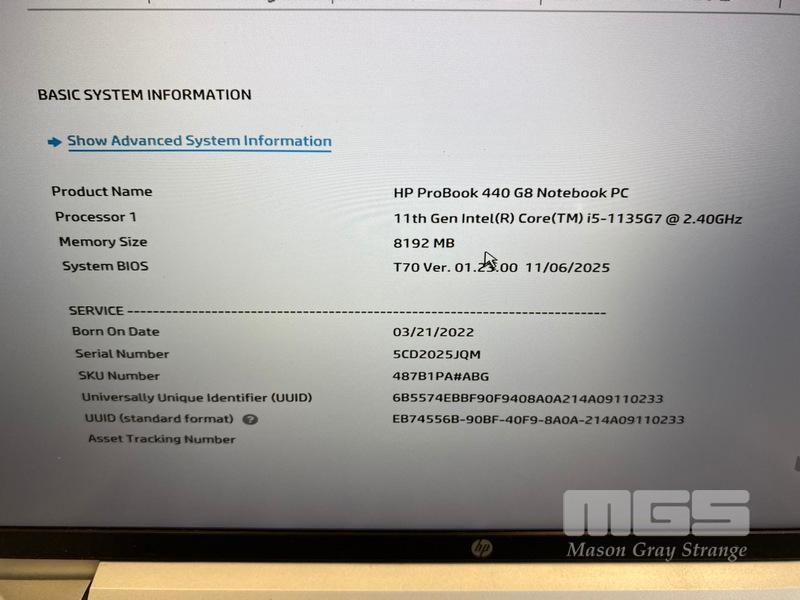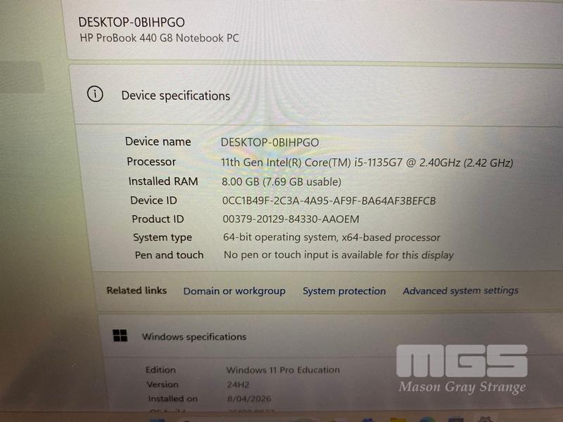 LAPTOP, HP PROBOOK 440 G8, CORE i5 1135G7 (11TH GEN) @ 2.4GHz, 8GB DDR4 RAM, 256GB NVMe M.2 SSD, 14" TOUCHSCREEN (1920x1080), INTEL UHD GRAPHICS, Wi-Fi, BLUETOOTH, WINDOWS 11 PRO EDUCATION INSTALLED & POWER SUPPLY (NOTE: SPOT ON SCREEN)