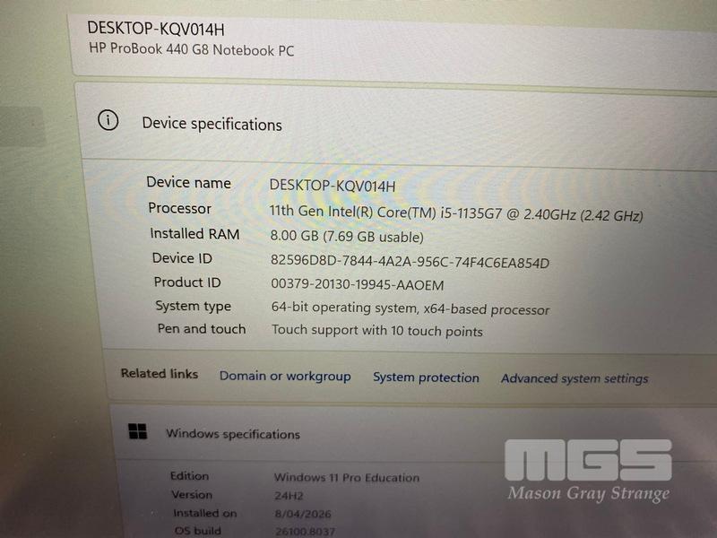 LAPTOP, HP PROBOOK 440 G8, CORE i5 1135G7 (11TH GEN) @ 2.4GHz, 8GB DDR4 RAM, 256GB NVMe M.2 SSD, 14" TOUCHSCREEN (1920x1080), INTEL UHD GRAPHICS, Wi-Fi, BLUETOOTH, WINDOWS 11 PRO EDUCATION INSTALLED & POWER SUPPLY (NOTE: MINOR DAMAGE TO CASING)