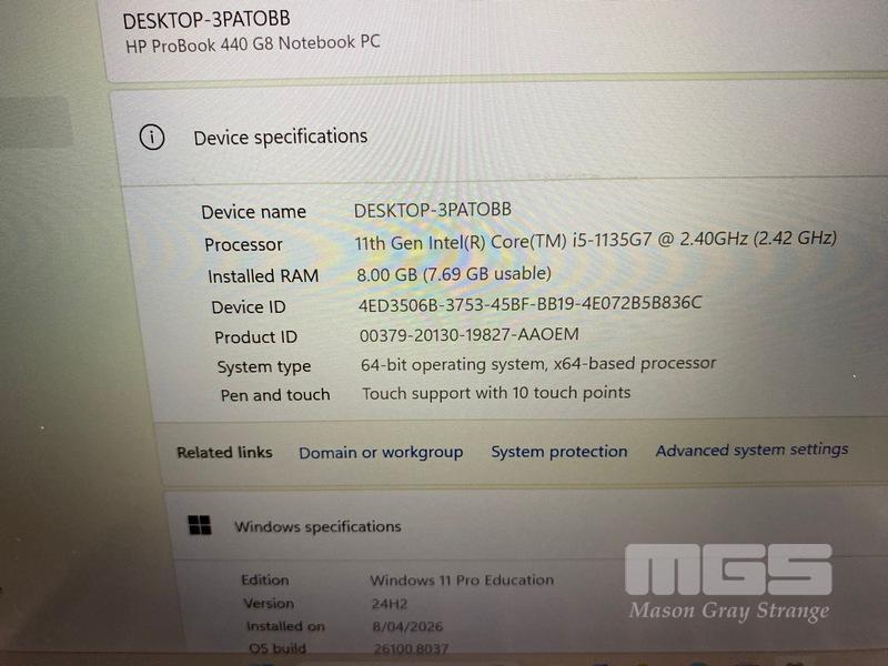 LAPTOP, HP PROBOOK 440 G8, CORE i5 1135G7 (11TH GEN) @ 2.4GHz, 8GB DDR4 RAM, 256GB NVMe M.2 SSD, 14" TOUCHSCREEN (1920x1080), INTEL UHD GRAPHICS, Wi-Fi, BLUETOOTH, WINDOWS 11 PRO EDUCATION INSTALLED & POWER SUPPLY (NOTE: MARKS ON SCREEN)
