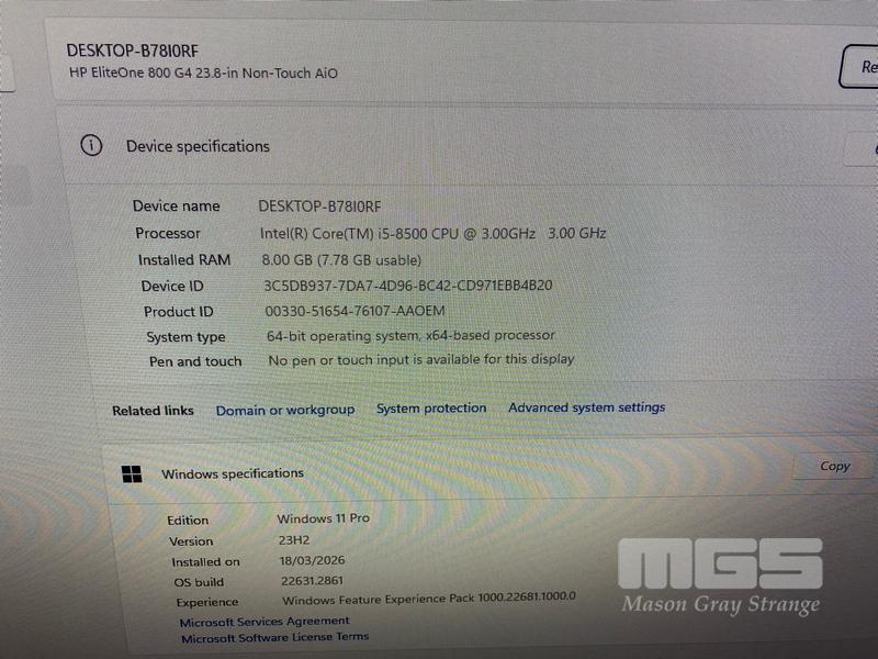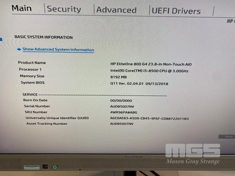 ALL-IN-ONE PC, HP ELITEONE 800 G4, CORE i5 8500 (8TH GEN) @ 3GHz, 8GB DDR4 RAM, 256GB NVMe M.2 SSD, DVD-RW, INBUILT 23.8" WIDESCREEN (1920x1080), INTEL UHD GRAPHICS, WINDOWS 11 PRO INSTALLED (NO KEYBOARD, NO MOUSE)