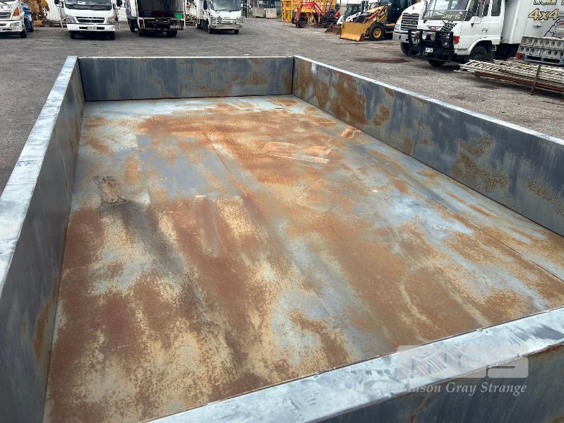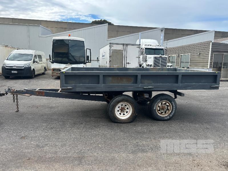 TANDEM AXLE TRAILER, 13x6.6ft HEAVY DUTY CONSTRUCTION NO REGO NO COMPLIANCE PLATE SPRING SUSPENSION BALL HITCH INTERNAL SIZE: 4000 x 2040mm TRYRE SIZE: 205 R 16 STEEL DECK, HINGED SIDE, FRONT & REAR GATES