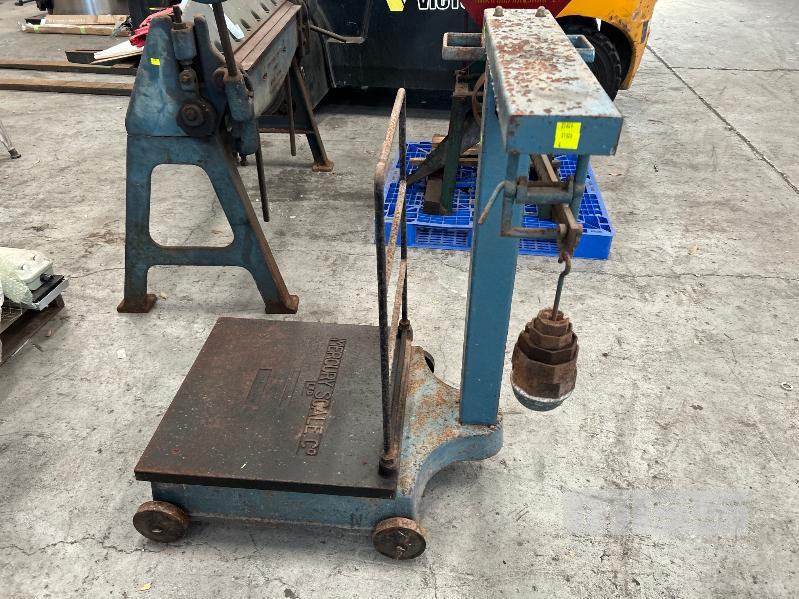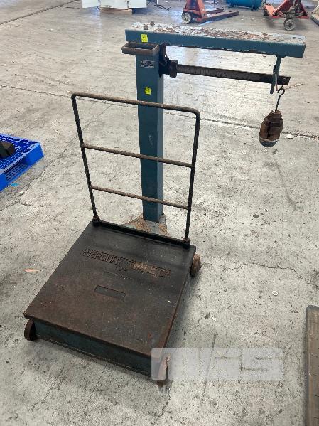 VINTAGE WOOL SCALES, MERCURY SCALE CO BALANCING SCALES MOD: 11302 CAPACITY: 603LB PLATFORM SIZE: 600 x 600mm