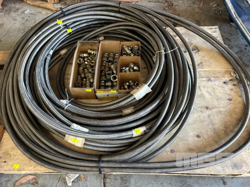 PTFE TEFLONE HOSE, STAINLESS STEEL BRAIDED MEDIUM DIA. 15-20mm ASSORTED SIZES AND LENGHT WITH FITTING TO SUIT APPROX 50 MTRS (1 x PALLET)