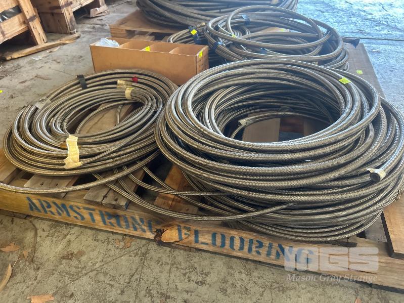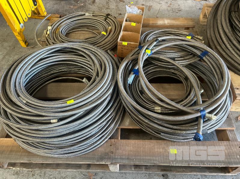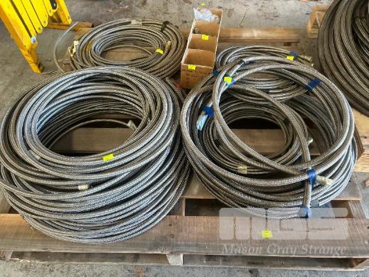 PTFE TEFLONE HOSE, STAINLESS STEEL BRAIDED SMALL DIA. 5-10mm ASSORTED SIZES AND LENGHT WITH FITTING TO SUIT APPROX 100 MTRS (1 x PALLET)